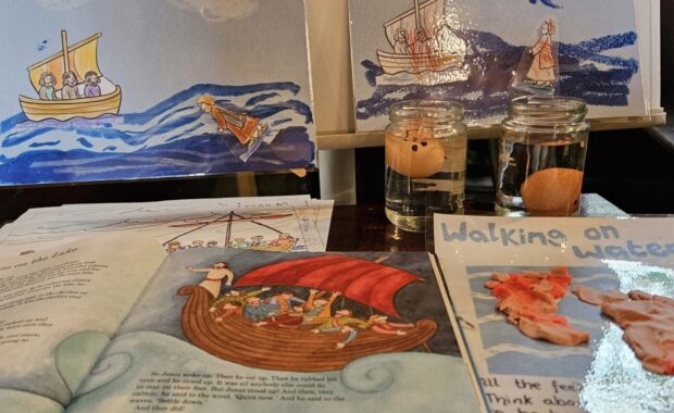 Today in our August Family Service, Rev.Sophie read a lovely story about The Storm On The Lake to the congregation. The children had a fun making pictures of Jesus Waking on the lake, they especially enjoyed being able to move Jesus back and forth using a lolly pop stick. We all took part in … [Read more...] about Walking on Water with Jesus