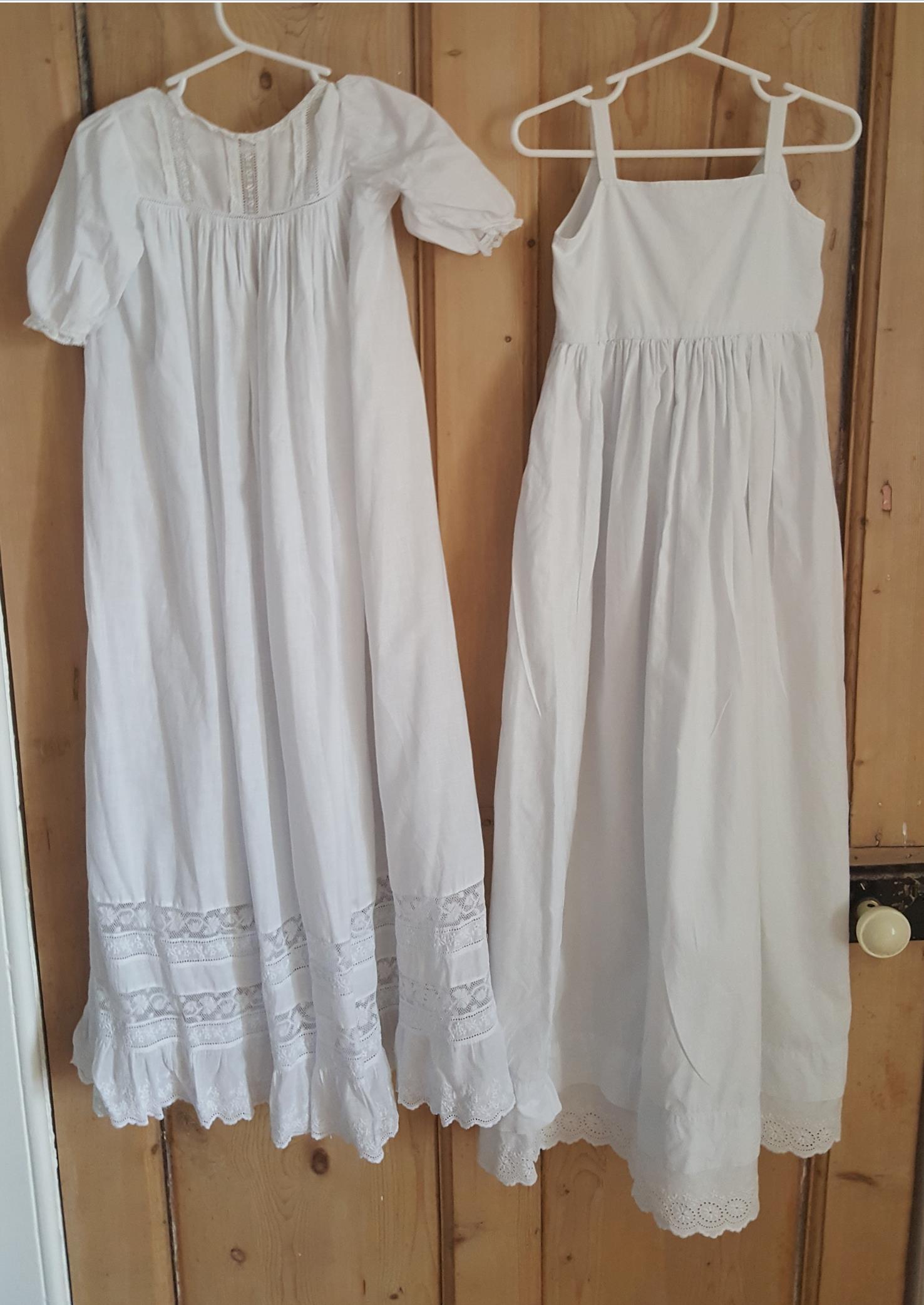 The gown has a 100 year history and has been worn by four generations of the same family. It was bought from T.P. Hughes in Haverfordwest High Street.