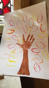 Today we had a lovely family Service on the topic of Autumn… the children all enjoyed creating their own painting of Autumn and everyone joined in adding leaves (paint) to a large Tree to be displayed in the church for our visitors to view. Our next Family service will be on the 3rd of November 10am (every first Sunday)